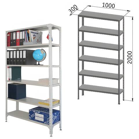 • Стеллаж металлический ПРАКТИК "MS", 2000х1000х300 мм, 6 полок, MS200/100х30/6