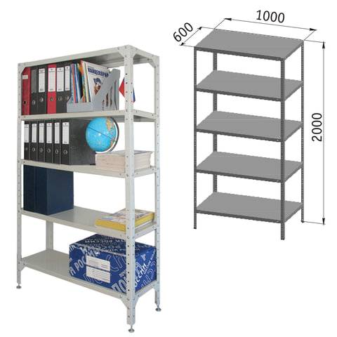 Стеллаж металлический "УНИВЕРСАЛ", 2000х1000х600 мм, УСИЛЕННЫЕ СТОЙКИ, 5 полок, регулируемые опоры, 290243